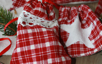Da es in unser in der Adventszeit mit viel weihnachtlichem Rot geschmückten Wohnzimmer einfach perfekt reinpasst, habe ich rot-weiß karierte Bettbezüge aus Leinen von meiner Oma genommen und daraus die Geschenkbeutel genäht - dadurch haben die Kalender für mich auch noch einen ganz besonderen Wert.